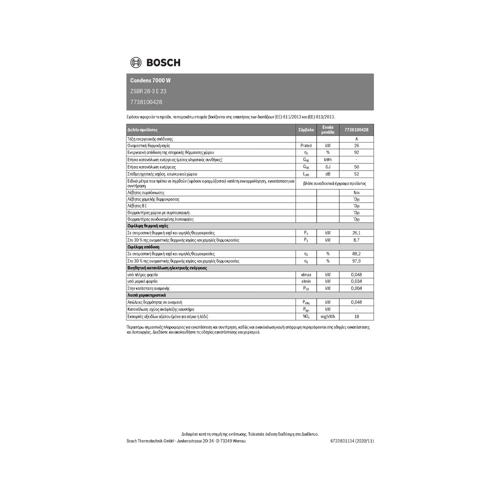 Bosch Condens 7000W ZWBR 35-3 E 23 Επιτοίχιος Λέβητας Συμπύκνωσης Αερίου με Καυστήρα